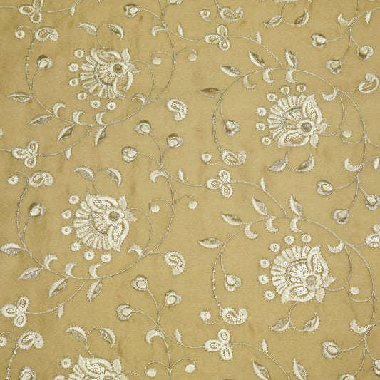Aatiya Beige Chanderi Embroidered Fabric in Jaal Pattern