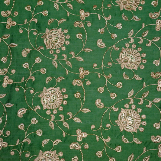 Aatiya Bottle Green Chanderi Embroidered Fabric in Jaal Pattern