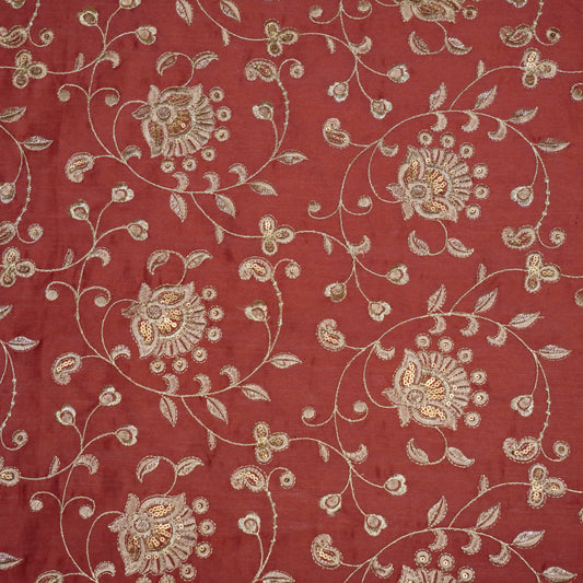Aatiya Maroon Chanderi Embroidered Fabric in Jaal Pattern