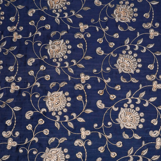 Aatiya Navy Blue Chanderi Embroidered Fabric in Jaal Pattern