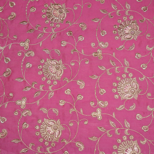 Aatiya Fuxia Chanderi Embroidered Fabric in Jaal Pattern