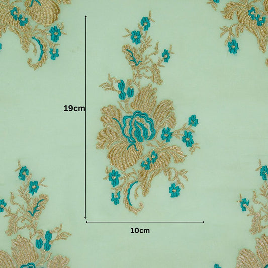 Abeer Sea Green Viscose Georgette Embroidered Fabric in Buta Buti Mixture Pattern
