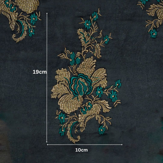 Abeer Navy Blue Viscose Georgette Embroidered Fabric in Buta Buti Mixture Pattern