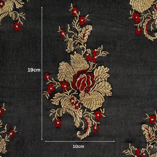 Abeer Black Viscose Georgette Embroidered Fabric in Buta Buti Mixture Pattern