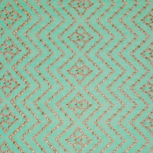 Abir Turquoise Viscose Georgette Embroidered Fabric in Jaal Pattern