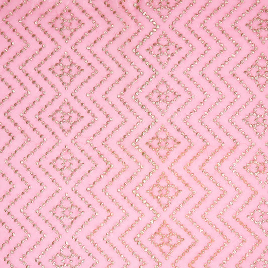 Abir Pink Viscose Georgette Embroidered Fabric in Jaal Pattern