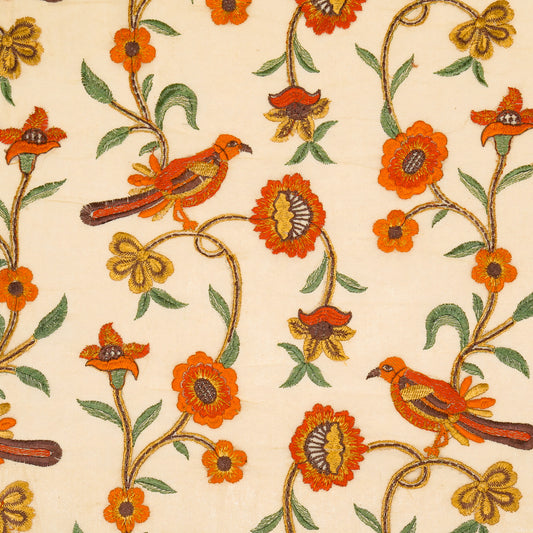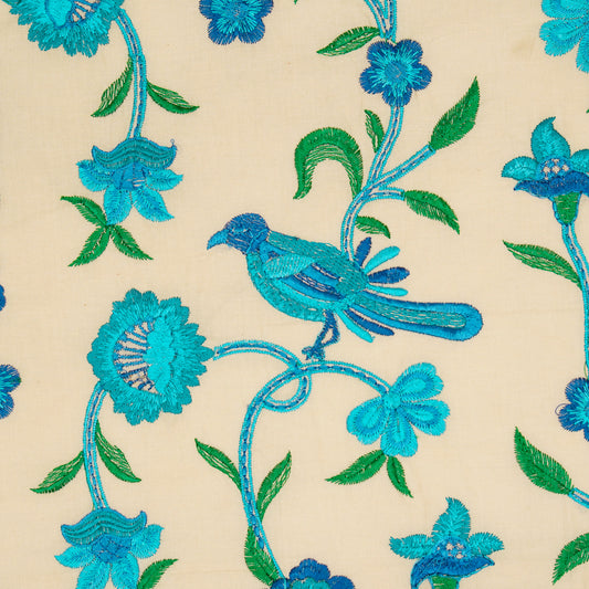 Aila Cream Cotton Embroidered Fabric in Jaal Pattern