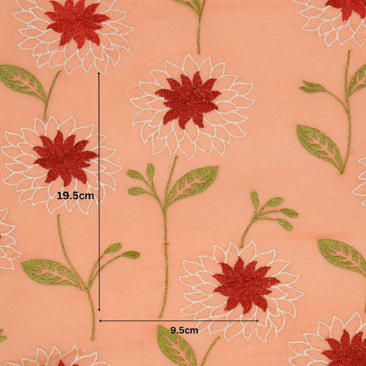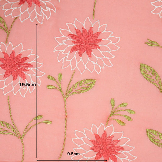 Akila Deep Peach Viscose Georgette Embroidered Fabric in Jaal Pattern