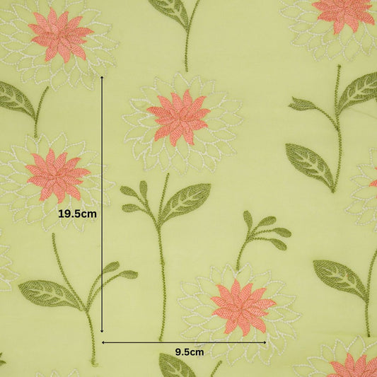 Akila Lemon Viscose Georgette Embroidered Fabric in Jaal Pattern