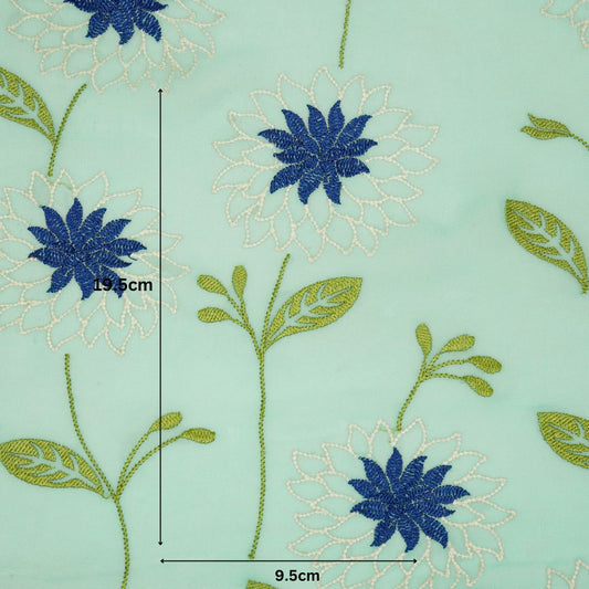 Akila Sky Blue Viscose Georgette Embroidered Fabric in Jaal Pattern