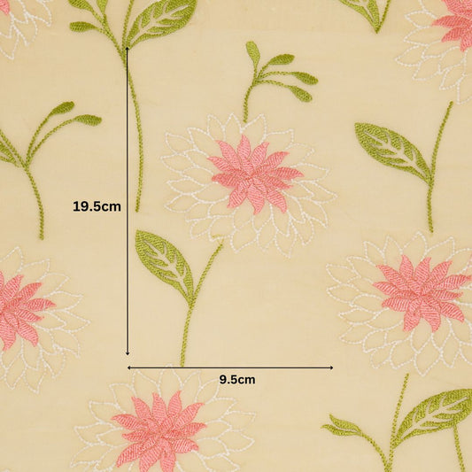 Akila Beige Viscose Georgette Embroidered Fabric in Jaal Pattern