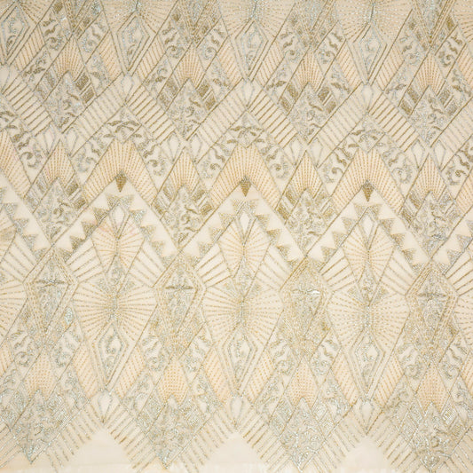 Anam Cream Viscose Georgette Embroidered Fabric in Jaal Pattern