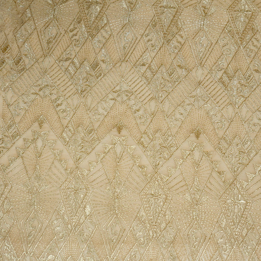 Anam Beige Viscose Georgette Embroidered Fabric in Jaal Pattern
