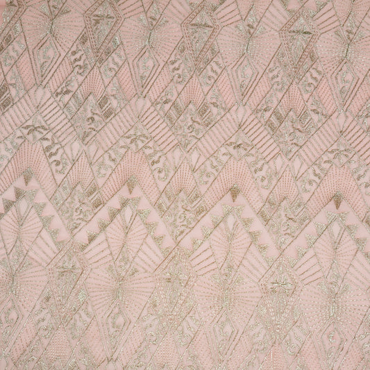 Anam Blush Viscose Georgette Embroidered Fabric in Jaal Pattern