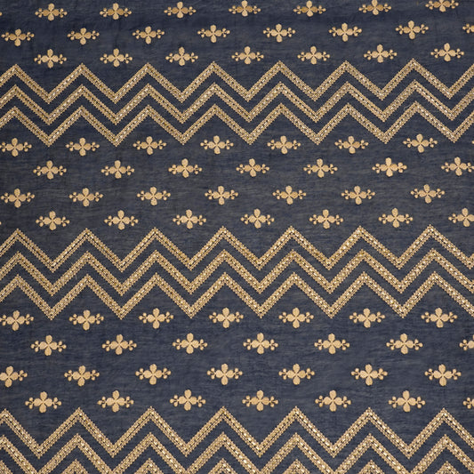 Umi Navy Blue Viscose Raw Silk Embroidered Fabric in Jaal Pattern