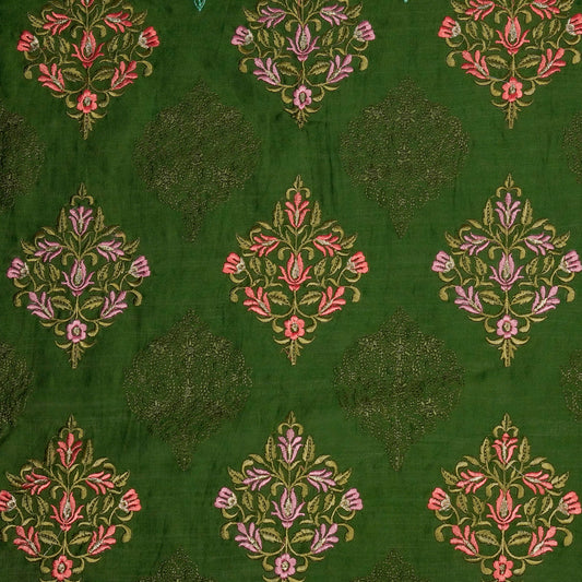 Arsia Leaf Green Chanderi Embroidered Fabric in Buta Pattern
