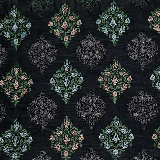 Arsia Black Chanderi Embroidered Fabric in Buta Pattern
