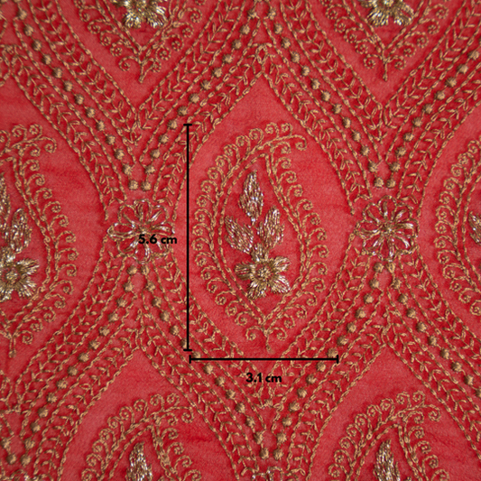 Aziz Blood Red Viscose Georgette Embroidered Fabric in Jaal Pattern