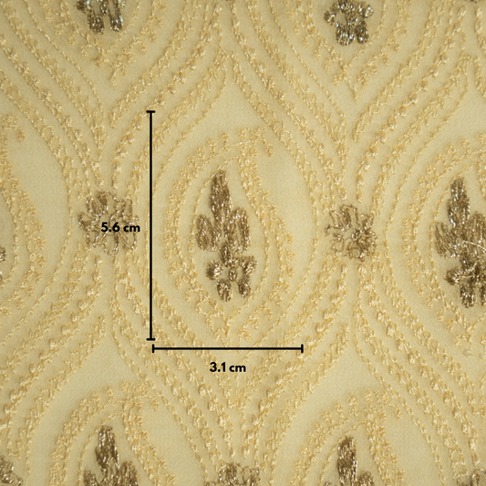 Aziz Beige Viscose Georgette Embroidered Fabric in Jaal Pattern