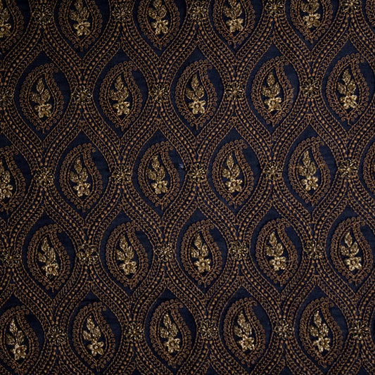 Aziz Navy Blue Viscose Georgette Embroidered Fabric in Jaal Pattern
