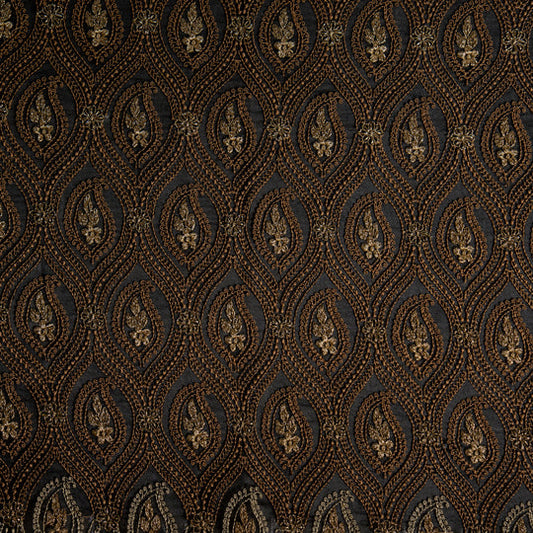 Aziz Black Viscose Georgette Embroidered Fabric in Jaal Pattern