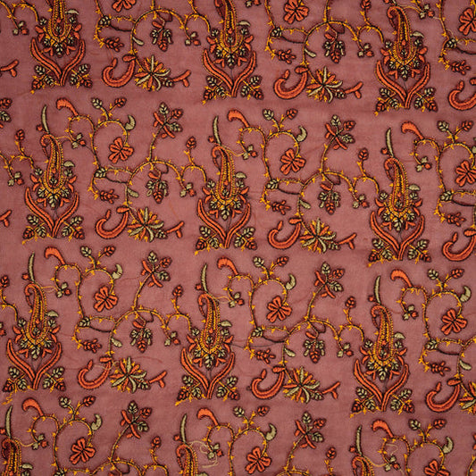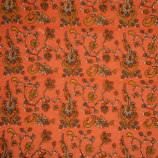 Beena Rust Viscose Georgette Embroidered Fabric in Jaal Pattern