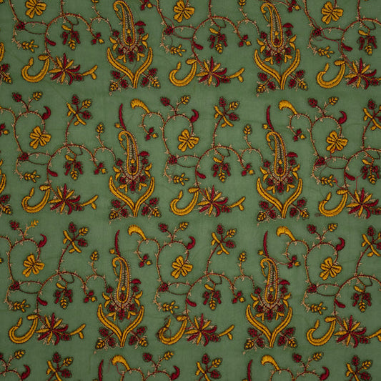 Beena Leaf Green Viscose Georgette Embroidered Fabric in Jaal Pattern