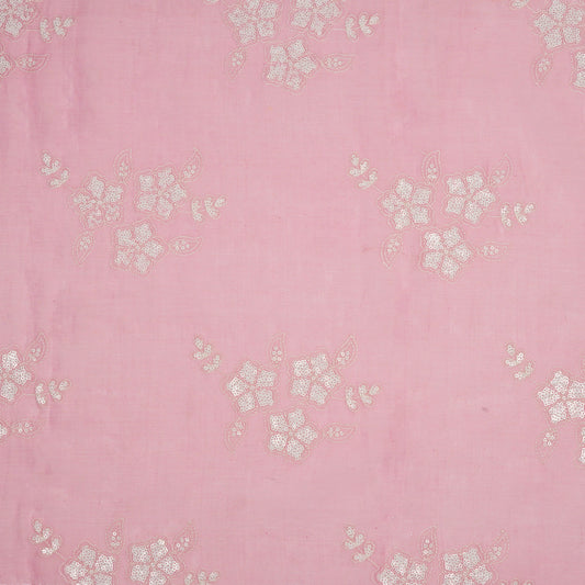 Aqsa Floral Pink Mul Chanderi Embroidered Fabric in Buta Pattern