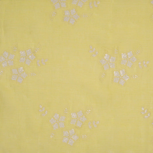 Aqsa Floral Yellow Mul Chanderi Embroidered Fabric in Buta Pattern