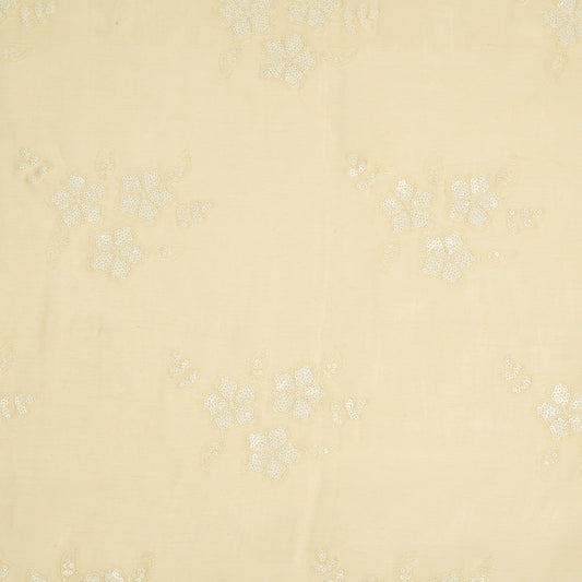 Aqsa Floral Cream Mul Chanderi Embroidered Fabric in Buta Pattern