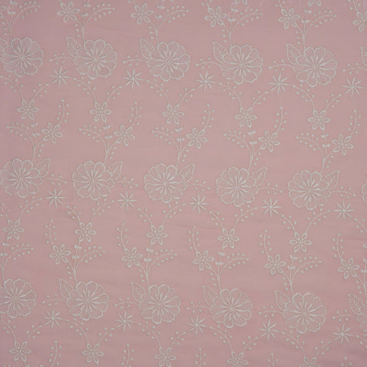 Waniya Pink Mul Chanderi Embroidered Fabric in Jaal Pattern