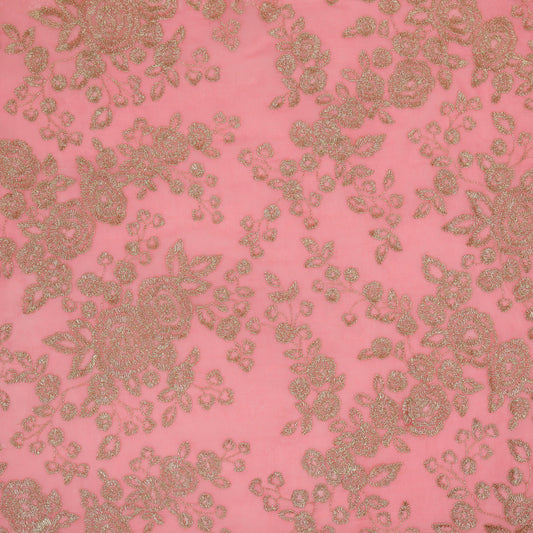 Maliha Peach Viscose Georgette Embroidered Fabric in Jaal Pattern