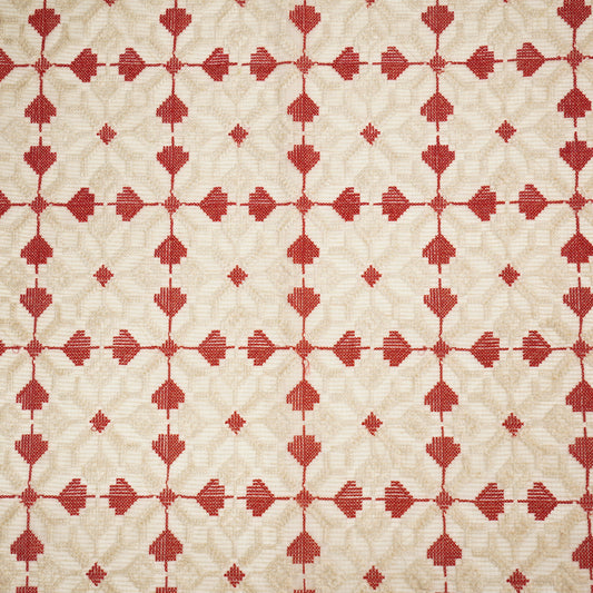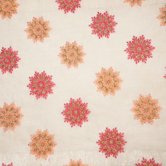Saras Natural Red Semi Munga Kota Embroidered Fabric in Jaal Pattern