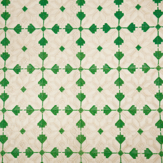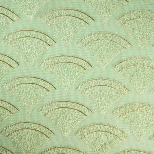 Saras Natural Green Semi Munga Kota Embroidered Fabric in Jaal Pattern