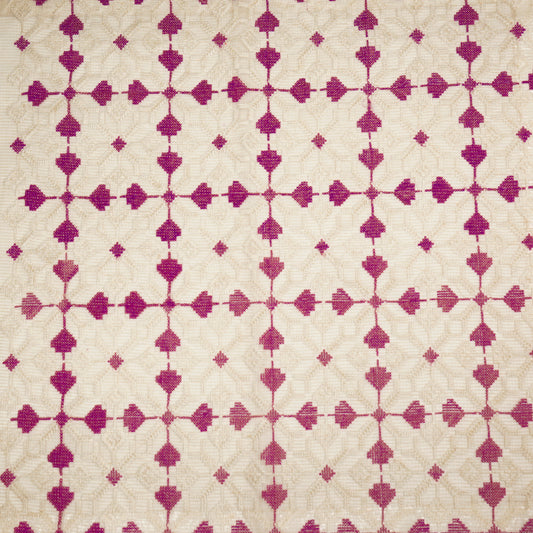 Saras Natural Magenta Semi Munga Kota Embroidered Fabric in Jaal Pattern