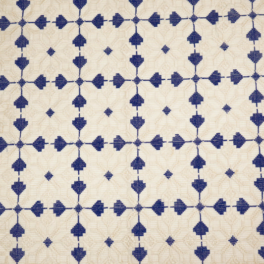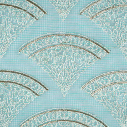 Saras Natural Blue Semi Munga Kota Embroidered Fabric in Jaal Pattern