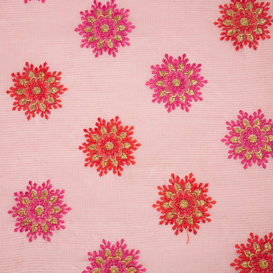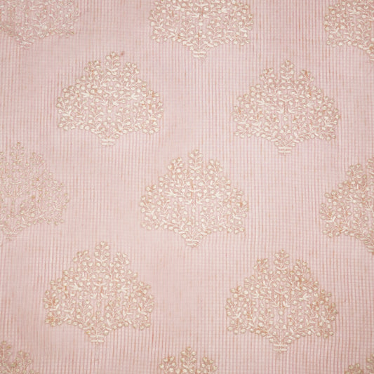 Triveni Pink Semi Munga Kota Embroidered Fabric in Buta Pattern