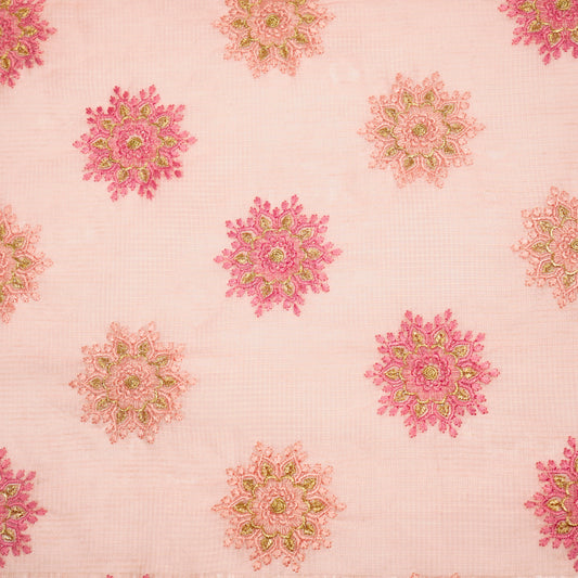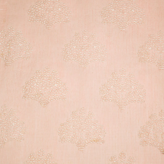 Namrata Light Peach Semi Munga Kota Embroidered Fabric in Buta Pattern
