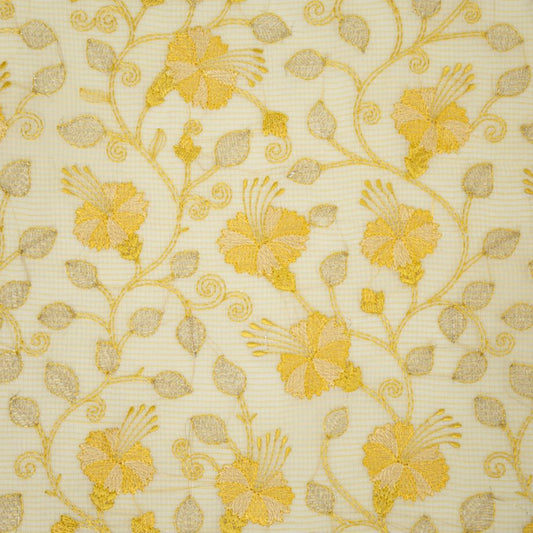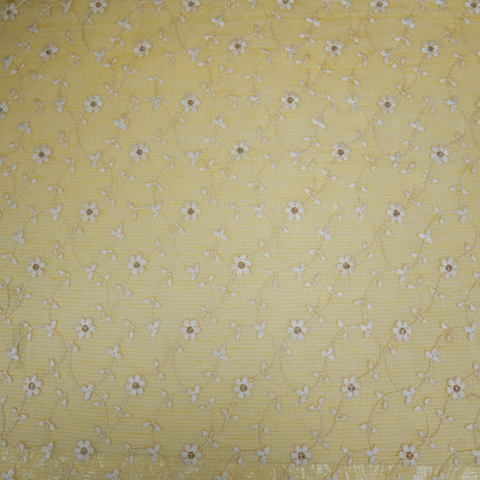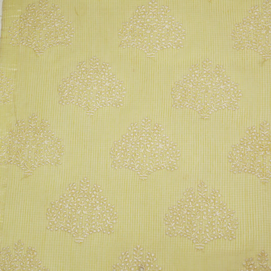 Madhavi Lemon Semi Munga Kota Embroidered Fabric in Buta Pattern