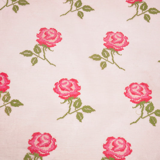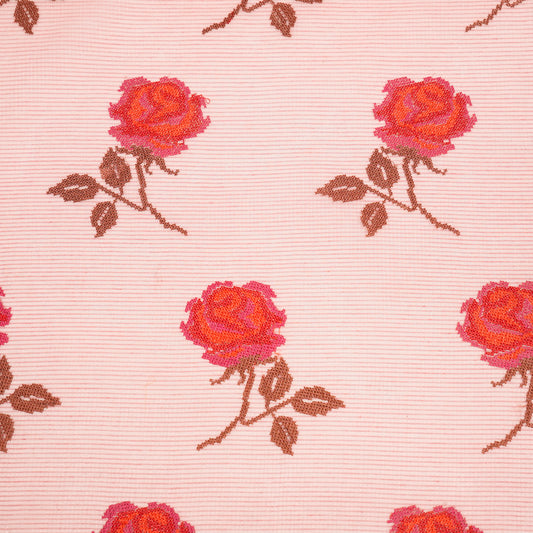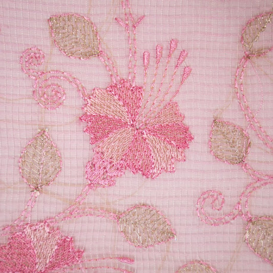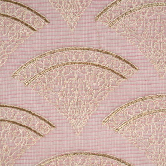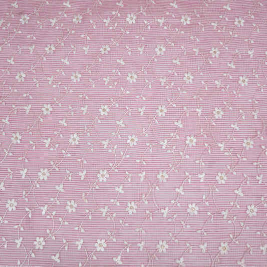 Tasnim Pink Semi Munga Kota Embroidered Fabric in Jaal Pattern