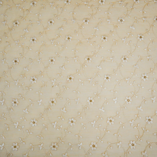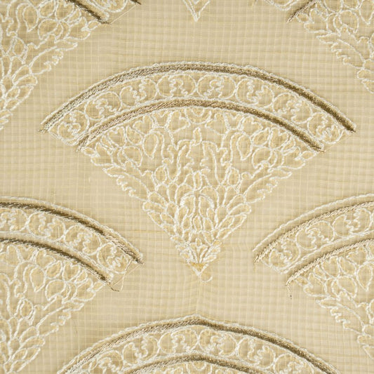 Wafiya Beige Semi Munga Kota Embroidered Fabric in Jaal Pattern