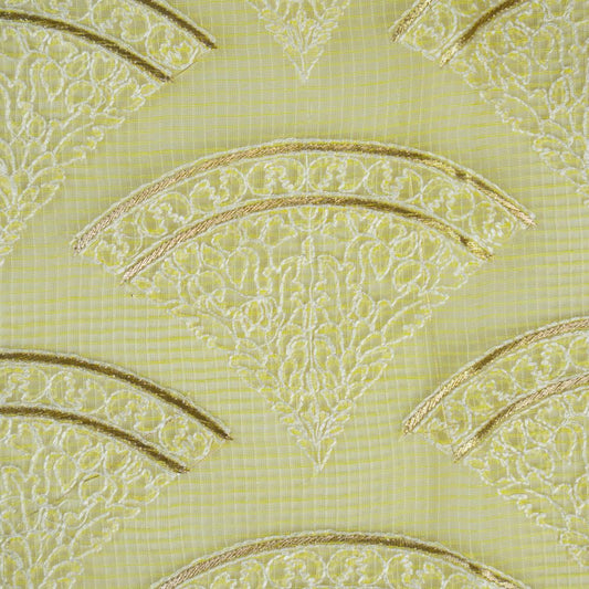 Tasnim Light Lemon Semi Munga Kota Embroidered Fabric in Jaal Pattern