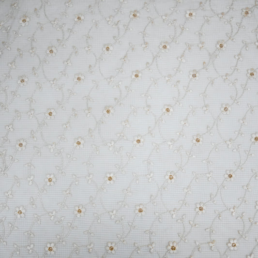 Wafiya White Semi Munga Kota Embroidered Fabric in Jaal Pattern