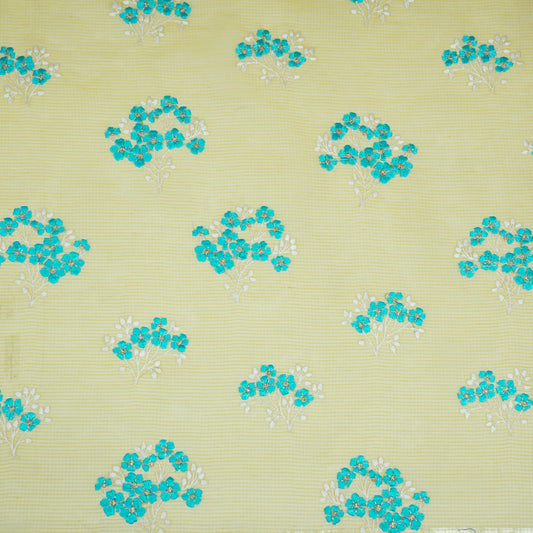 Yatika Lemon Semi Munga Kota Embroidered Fabric in Buta Pattern