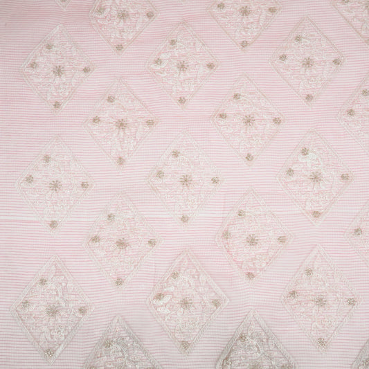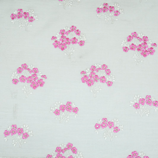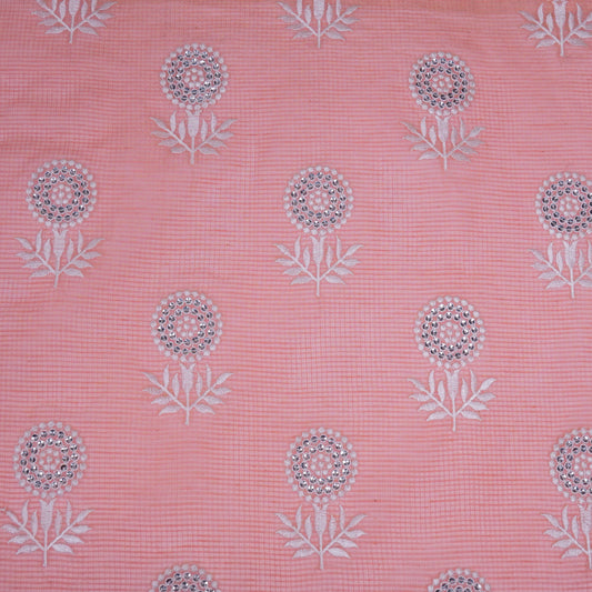 Yatika Pink Semi Munga Kota Embroidered Fabric in Buta Pattern