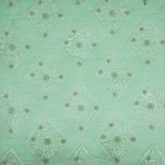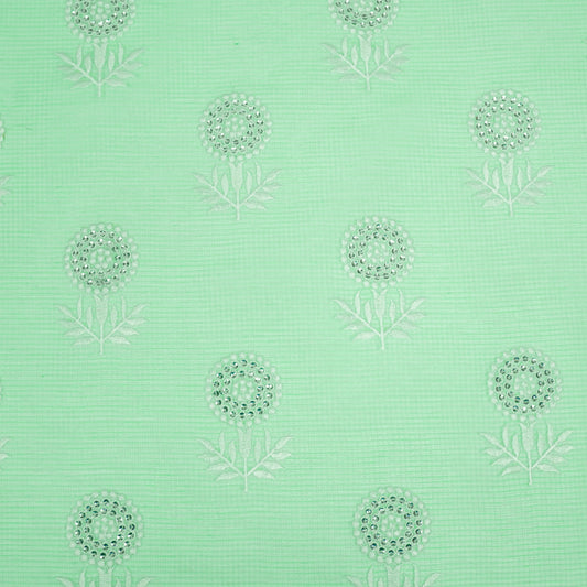Yara Pista Green Semi Munga Kota Embroidered Fabric in Buta Pattern