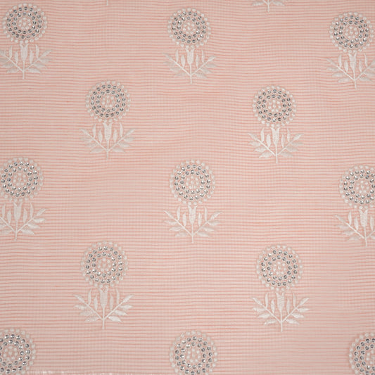 Rasha Peach Semi Munga Kota Embroidered Fabric in Jaal Pattern