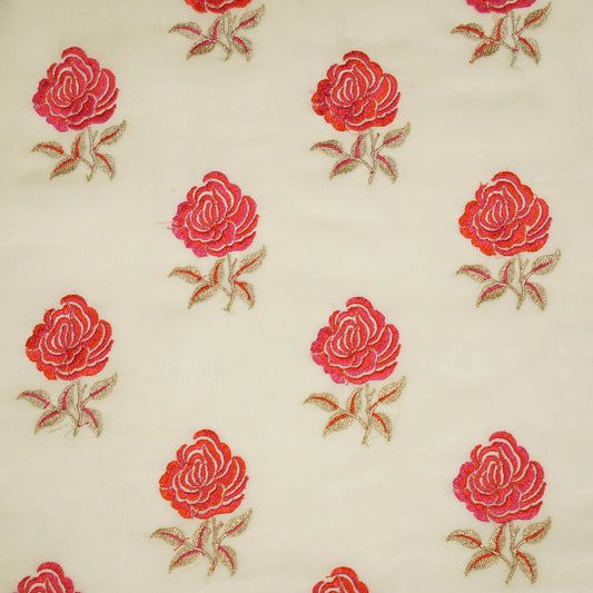 Lalita Cream Viscose Georgette Embroidered Fabric in Buta