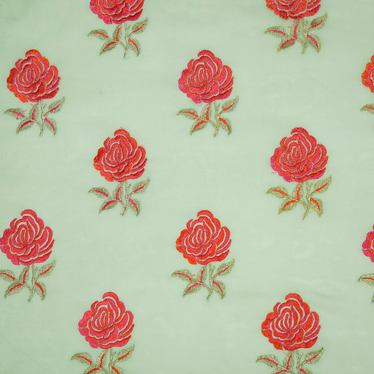 Lalita Light Pista Viscose Georgette Embroidered Fabric in Buta