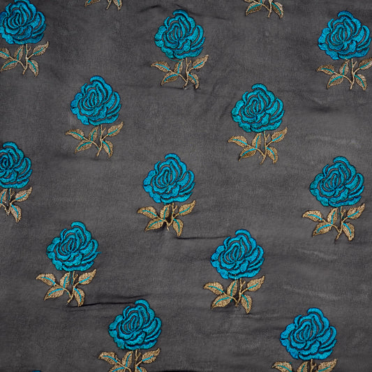Lalita Mouse Viscose Georgette Embroidered Fabric in Buta